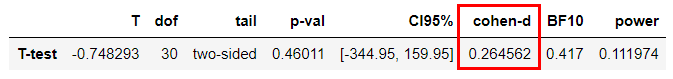 #독립표본 t-검정의 결과에서 cohen-d는 Cohen의 d라는 효과 크기 표시 방법입니다.