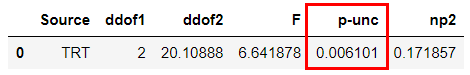 # 분산분석 결과에서 p-unc가 p-value입니다.