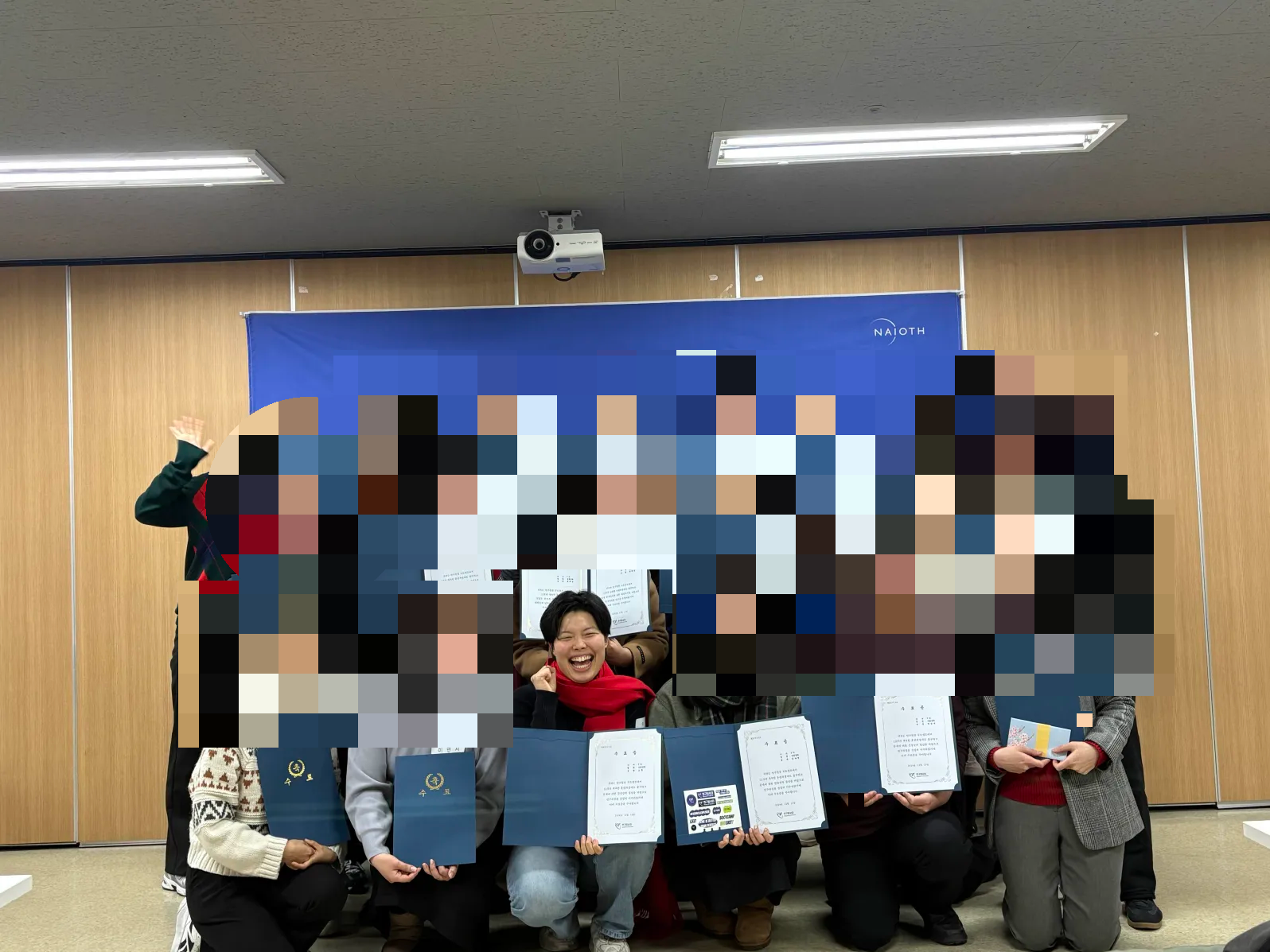 다같이 파이팅하면서 마무리했어요! 드디어 끝이라니 아주 반가운 마음이 한가득입니다~ 다음 2월에 열릴 컨퍼런스 발표를 준비하며 특훈도 준비할 예정인데요, 잠시 쉬었다가 연구를 계속 이어나가려고 합니다. 나이오트에서 계속 연결점을 가져가려고 시도하시더라고요. 단발성이 아닌 프로젝트라는 점이 참 좋은 것 같아요.